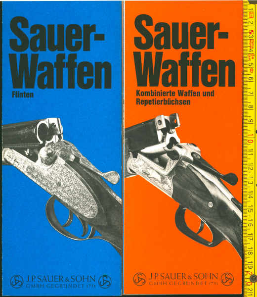 Sie bieten auf einen Flyer über Sauer Waffen. Es werden ca. 12 Waffen abgebildet und mit ihren technischen Daten grob beschrieben.