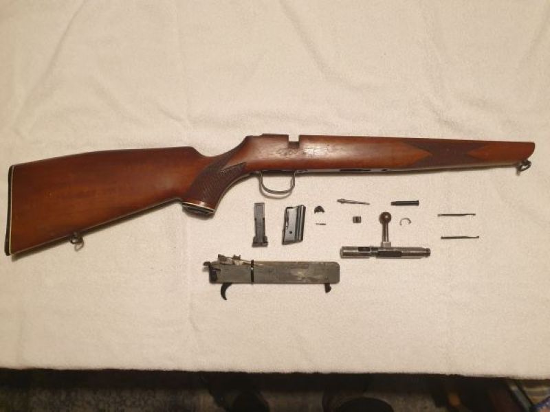 Zum Verkauf stehen die abgebildeten freien Teile einer KK-Repetierbüchse