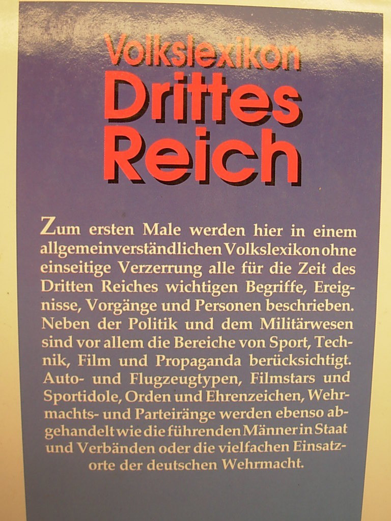 Volkslexikon des Nationalsozialismus – 1939 / 1945 – Aufschlüsselung der Abkürzungen – Orden – Abzeichen – Namensträger – Ereignisse ––- Zustand siehe Bilder . Artikel stammt aus Sammlungsauflösung. Bei Fragen bitte Mail - Bilder sind wesentlicher Bestandteil der Beschreibung -