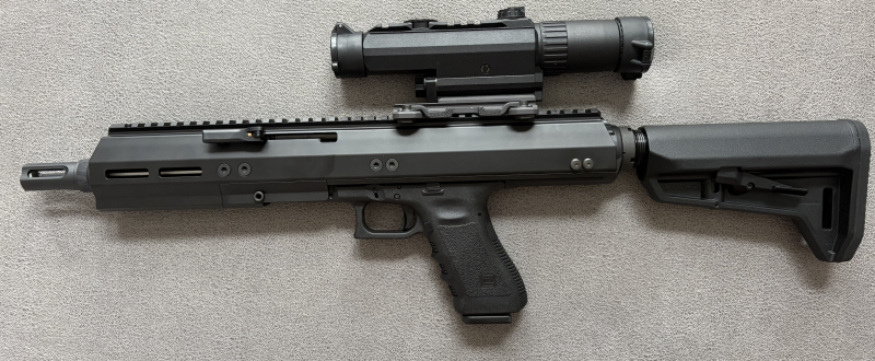 mit Polygonlauf ( Gewinde 15 x 1 ) und Kompensator. MAGPUL- MOE ® SL-K Carabine Stock – Mil Spec Montiert war es mit dem Griffstück einer Glock 17 (Gen 3). Zustand: wie neu - Schussbelastung nur: 30 Ein Wechselsystem ist in gleichem oder kleinerem Kaliber in Deutschland erlaubnisfrei, muss jedoch wie üblich bei der Waffenbehörde gemeldet werden. Rechtlich zählt dieses Wechselsystem als Kurzwaffe. Nur bei Besitz einer entsprechenden Glock Pistole, kann das Wechselsystem erworben werden.
