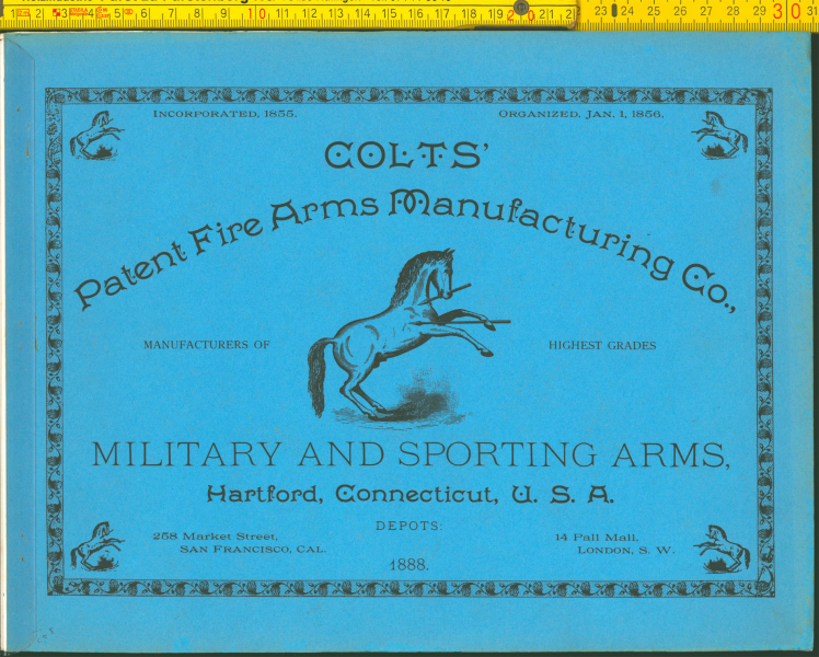 Sie bieten auf einen Reprint/Kopie eines historischen Katalogs der Firma Colt Patent Fire Arms Manufacturing Co. Der Katalog hat 35 Seiten.