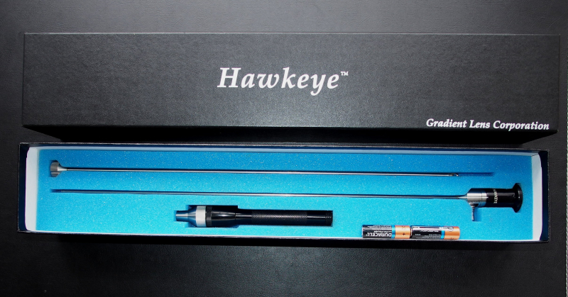 Dieses Endoskop von Hawkeye entspricht den Qualitätsanforderungen der Medizinaltechnik und wird für die Innenbetrachtung von Waffenläufen produziert. Die Einschublänge von 43cm reicht aus um Gewehrläufe lückenlos zu inspizieren. Das Endoskop wird durch ein aufschraubbares Taschenlampen-Modul mit zwei AA-Batterien beleuchtet und liefert ein helles, klares, scharfes und detailreiches Bild des Laufinneren. Der Lauf kann allseitig im Detail betrachtet werden, selbst kleinste Mängel sind deutlich erkennbar. Es handelt sich um ein hochwertiges Präzisions Endoskop mit professioneller Abbildungsqualität und ist nicht mit den auf dem Markt angebotenen elektronischen Fernost Endoskopen vergleichbar. Der jetzige Neupreis für die angebotene 43cm Endoskoplänge liegt bei ca. 2000 EUR.