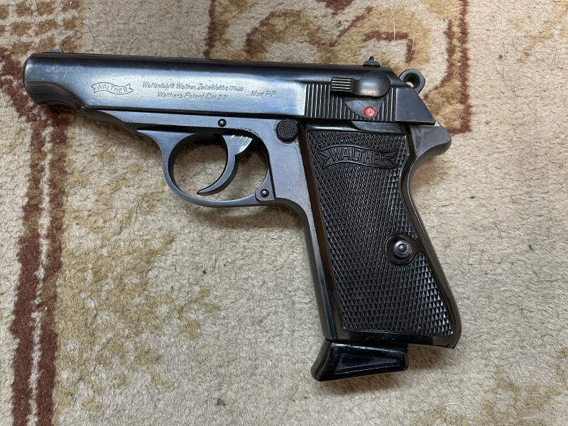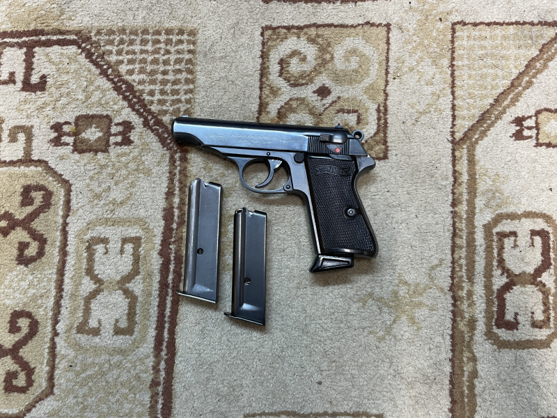 Verkaufe vom Sammler eine Selbstladepistole Fa. Walther Mod. PP Kal. .22lr. Gestempelt mit Zella-Mehlis(Thür.) Walthers Patent, Herst.-Nr. 134318P. Die Pistole hat CIP -Beschuss und ist gut erhalten, der Lauf ist blank. Mit dem Kaliber gut geeignet für die Fallenjagd u. den Fangschuss. Außer dem Originalmagazin mit Magazinschuh gibt es noch 2 weitere. Verkauft wird nur gegen Vorlage einer gültigen Erwerbsberechtigung (EWB), gültigem Voreintrag und den NWR-Id.Nr.: P u. E!