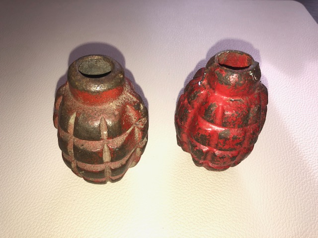 2 Handgranaten Wurfkörper Deko, F1, ROT, inert