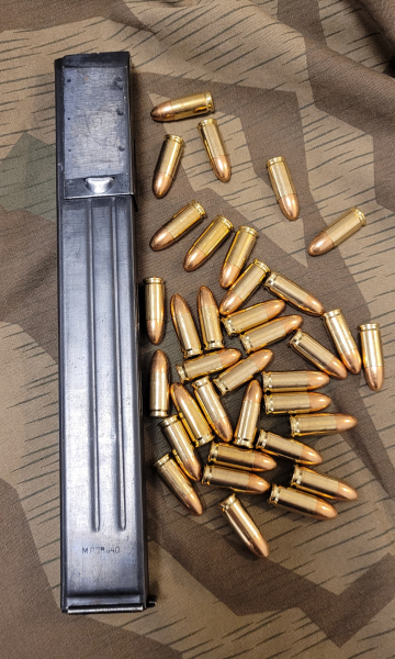 Original Magazin für die MP40 oder MP38 in Deko! Eine Magazinlippe wurde entfernt, somit ist die Aufnahme von Patronen unmöglich. Hersteller ayf 41. Zum Zustand siehe Bilder. Die Dekopatronen stehen nicht zum Verkauf, nur das Magazin. Privatverkauf keine Rücknahme oder Gewährleistung!