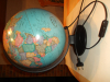 Gut erhaltener Globus mit Beschriftung: Scan-Globus A/S, Made in Denmark, Deutsche Edition. Geprüft nach BGV ab Jan. 2023, IBAN 11075. Mit elektrischer Beleuchtung die derzeit funktioniert und schwarzem Elektrokabel. Standfuß aus schwarzem Kunststoff ebenso der Meridian. Gesamthöhe 40 cm, Durchmesser ca. 30 cm. Weltkugel aus einem privaten Bestand der aufgelöst wird.
