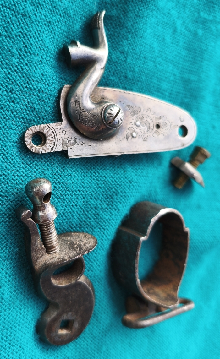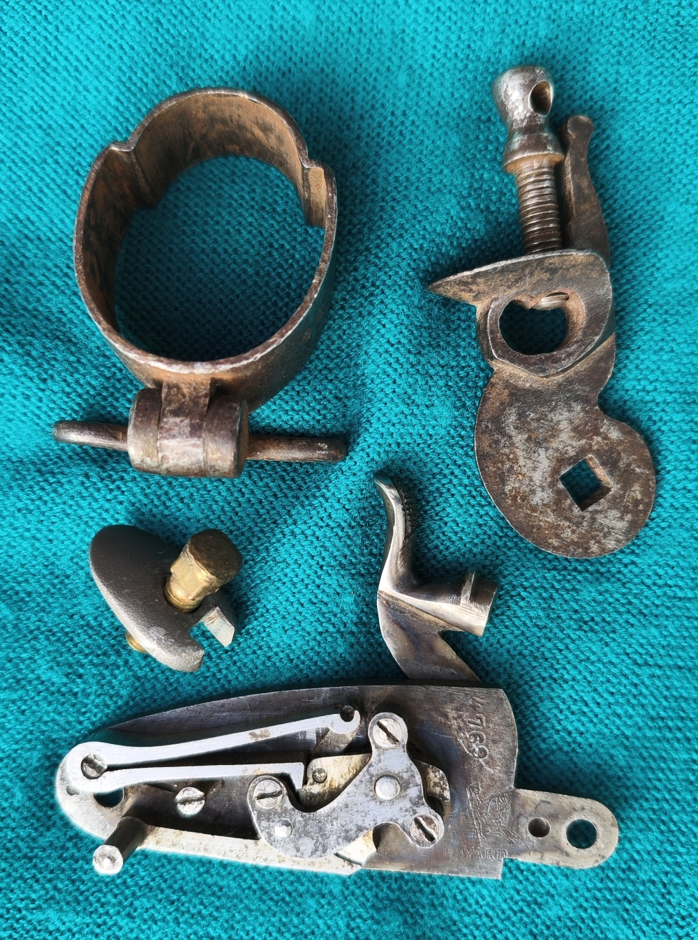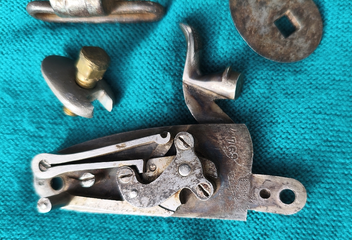 • linkes Seitenschloß, Abzugsstangenfeder fehlt, Länge circa 8cm.