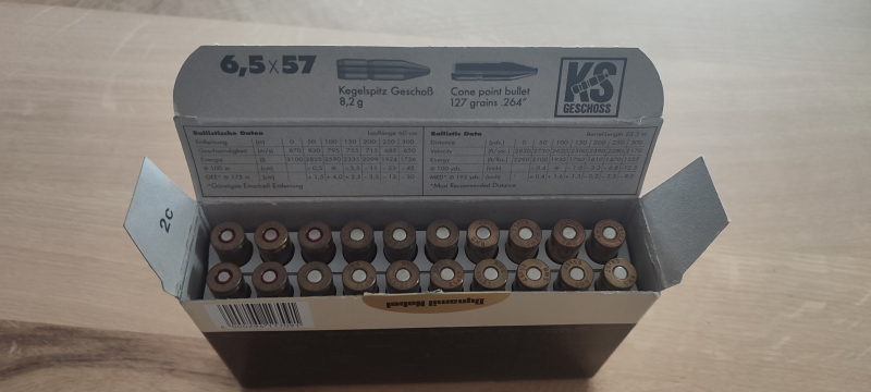 Verkaufe hier 20 Schuss 6,5x57 RWS Kegelspitz Geschoss mit 8,2g.