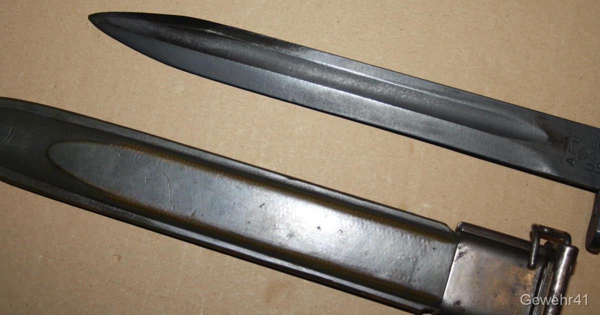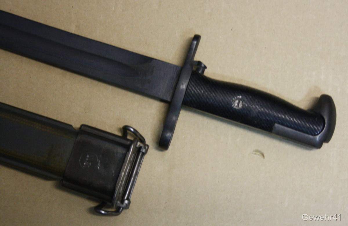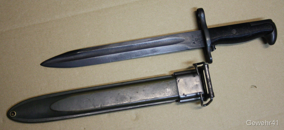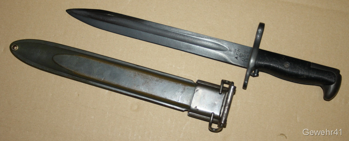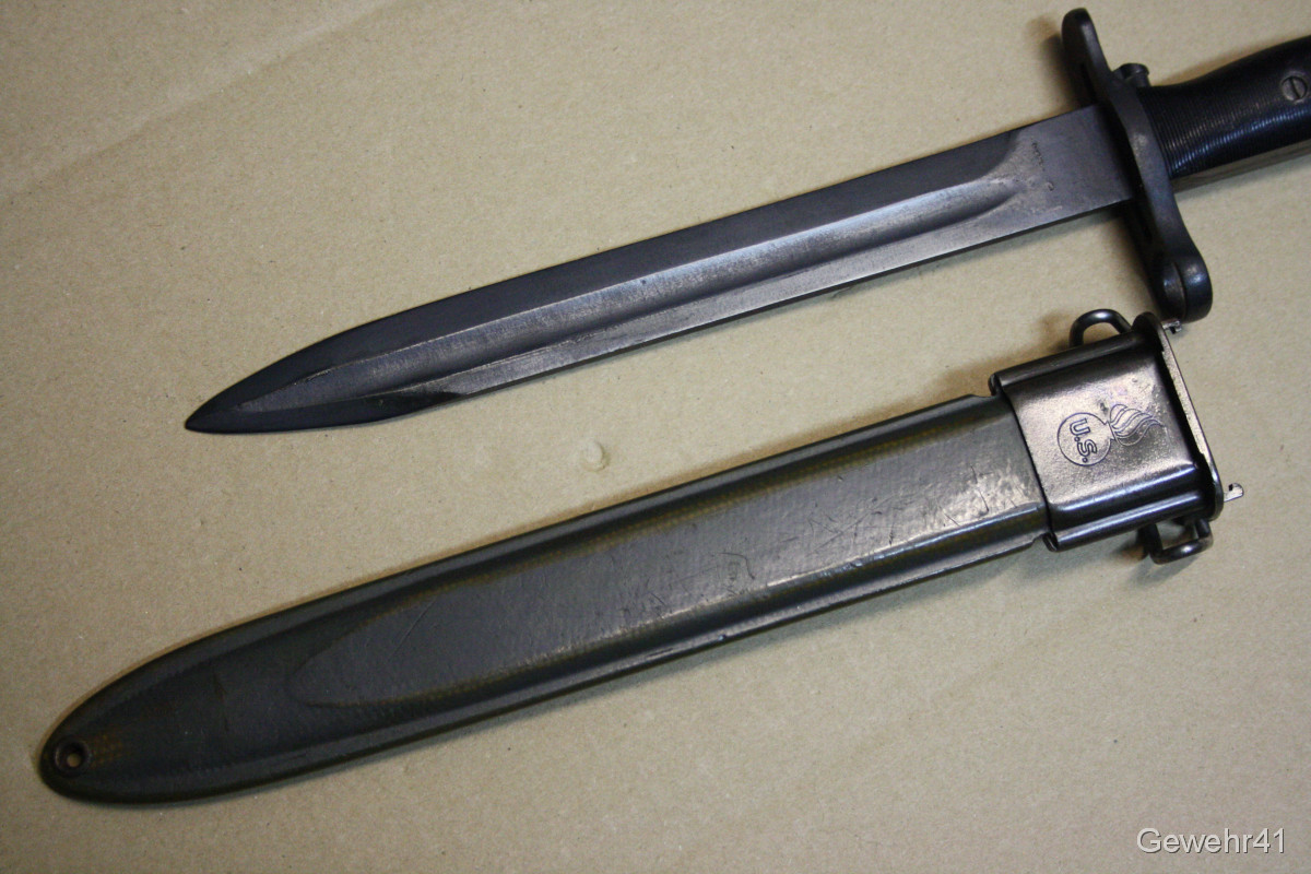 Sie bieten auf ein orig. US WK2 Bajonett für den M1 Garand aus 1942er Fertigung. Seltenes Stück mit gekürzter Klinge im wirklich schönen Zustand. TOP!