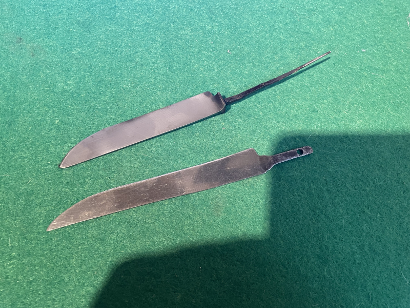 zwei alte Messerklingen 19 bzw. 12 cm Klingenlänge ohne Angel gemessen