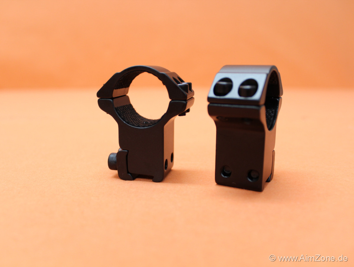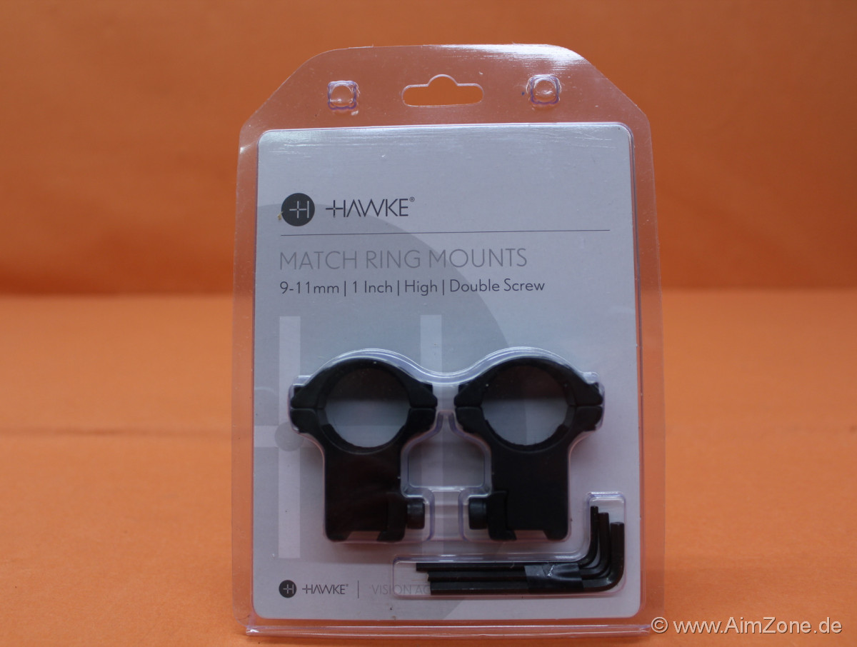 HAWKE Montageringe Match 1" high (22102) BH=22mm Alu schwarz matt mit 2 Schrauben für 9-11mm Prismenschiene (Aufkipp-Montageringe).