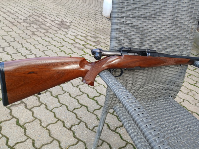 Hier kommt eine neuwertige Repetierbüchse der renommierten Waffenschmiede Heym im Universalkalieber . 308 Win zum Verkauf. Der schön gemaserte Nußbaumschaft mit Edelhozabschluss hat eine Länge von ca. 36cm bis zum trocken stehenden Feinabzug ,die Lauflänge beträgt 50cm .Verbaut ist eine Dendler Grundschiene und auf dem Gewinde 14X1mm sitzt ein abnehmbares Korn .