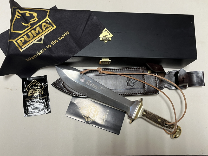 Puma Waidblatt, Stahl 1.4116, Hirschhorn, Lederscheide