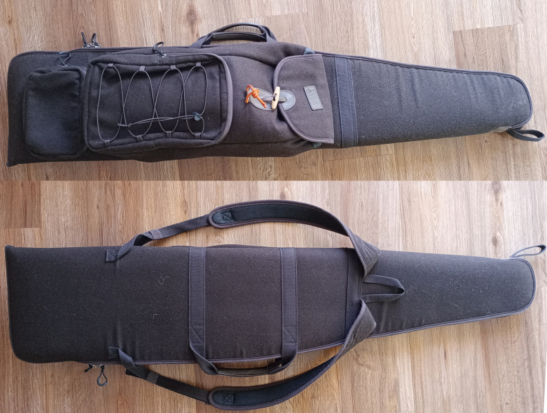Das Futteral ist aus Loden gefertigt. In das Hauptfach passt eine Langwaffe mit einer Länge von bis zu ca. 126 cm, der Doppelreißverschluss kann gesichert werden. Die Polsterung des Hauptfaches besteht aus Lammfellimitat überzogenem Schaumstoff. Das große aufgesetzte Fach hat ein Volumen von ca. 12 Liter und ein Bungee-Cord. Zusätzlich gibt es eine kleine aufgesetzte Tasche mit Reißverschluss. Das Futteral kann mit Hilfe der verstellbaren Rucksackgurte komfortabel getragen werden. Der Versand erfolgt einmal gefaltet in einem großem Umzugskarton.