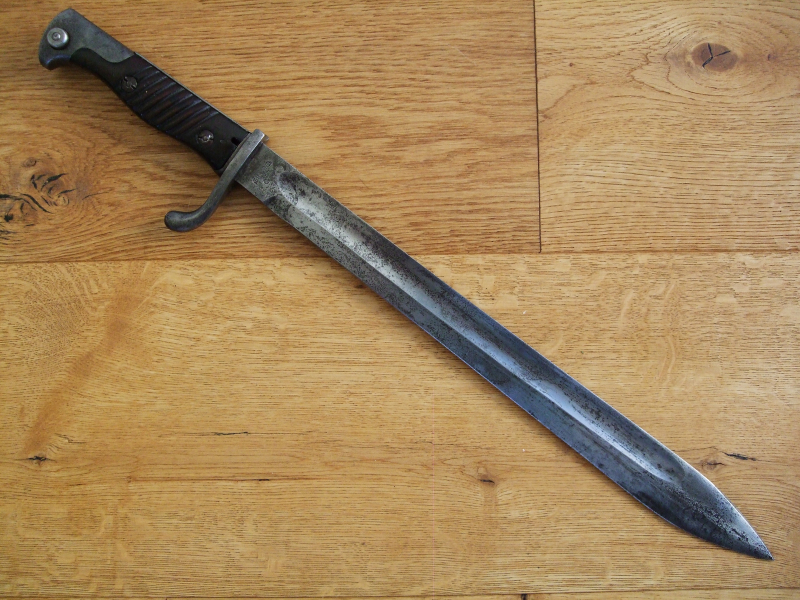 Die Gesamtlänge beträgt ca. 502 mm und die Klingenlänge ca. 370 mm, die Klinge hat einen kaum sichtbaren kriegsmäßigen Anschliff. Das Bajonett ist im unberührtem Fundzustand und im altersgemäß sehr schönem Zustand.
