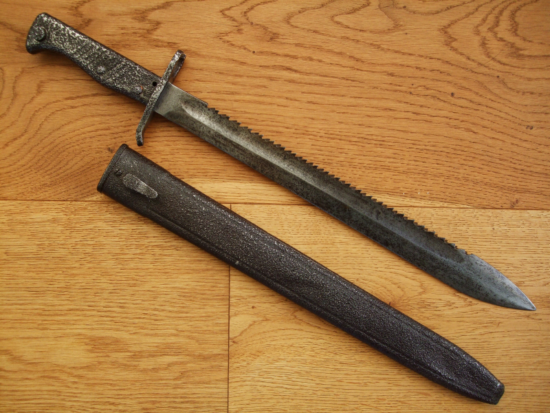 Biete hier ein sehr seltenes, originales Ersatzbajonett 98/05 mit Säge und seltener ersatzscheide an, siehe Ersatzbajonett 42.