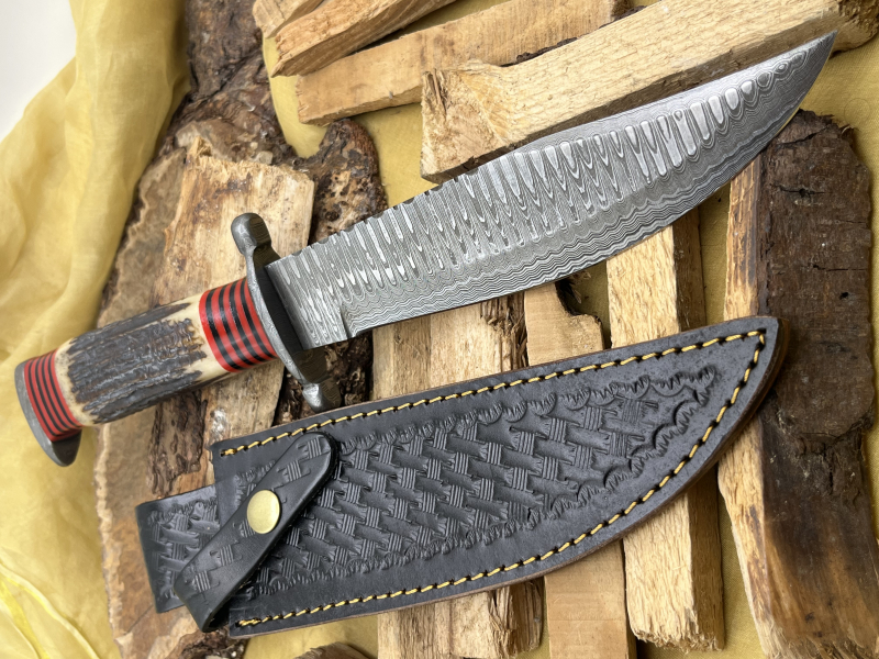 - Typ: Bowie-Messer aus echtem, mehrlagigem Damaststahl (über 200 Lagen)