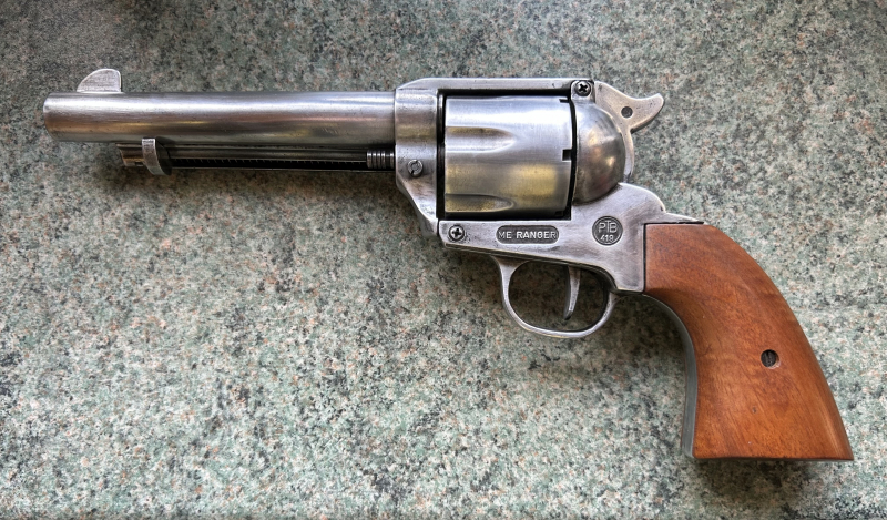 Hallo, verkaufe hier aus meiner Sammlung einen schönen und so selten SAA ME Ranger 9 mm Knall mit PTB Nr. 419 mit der Seriennummer 00 844 er hat eine minimale kaum sichtbare Laufsperre, was heute nicht mehr denkbar wäre. Er hat Echtholzgriffe ein Gewicht von 980 g und ist irgendwann mal aufpoliert worden sowie die Hahnspitze beim Vorgänger abgebrochen ist, beeinträchtigt aber die Funktion nicht auch die Trommel kann bei diesem Modell ohne Werkzeug ausgebaut werden