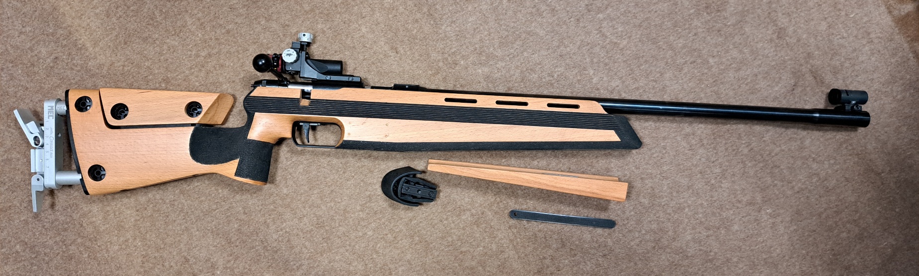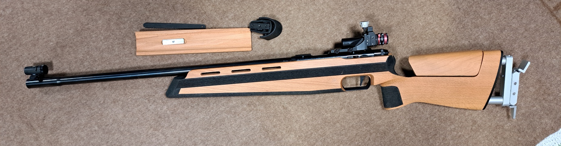 und Schießriemenhalter von Anschütz und Buchenholzauflageschiene.