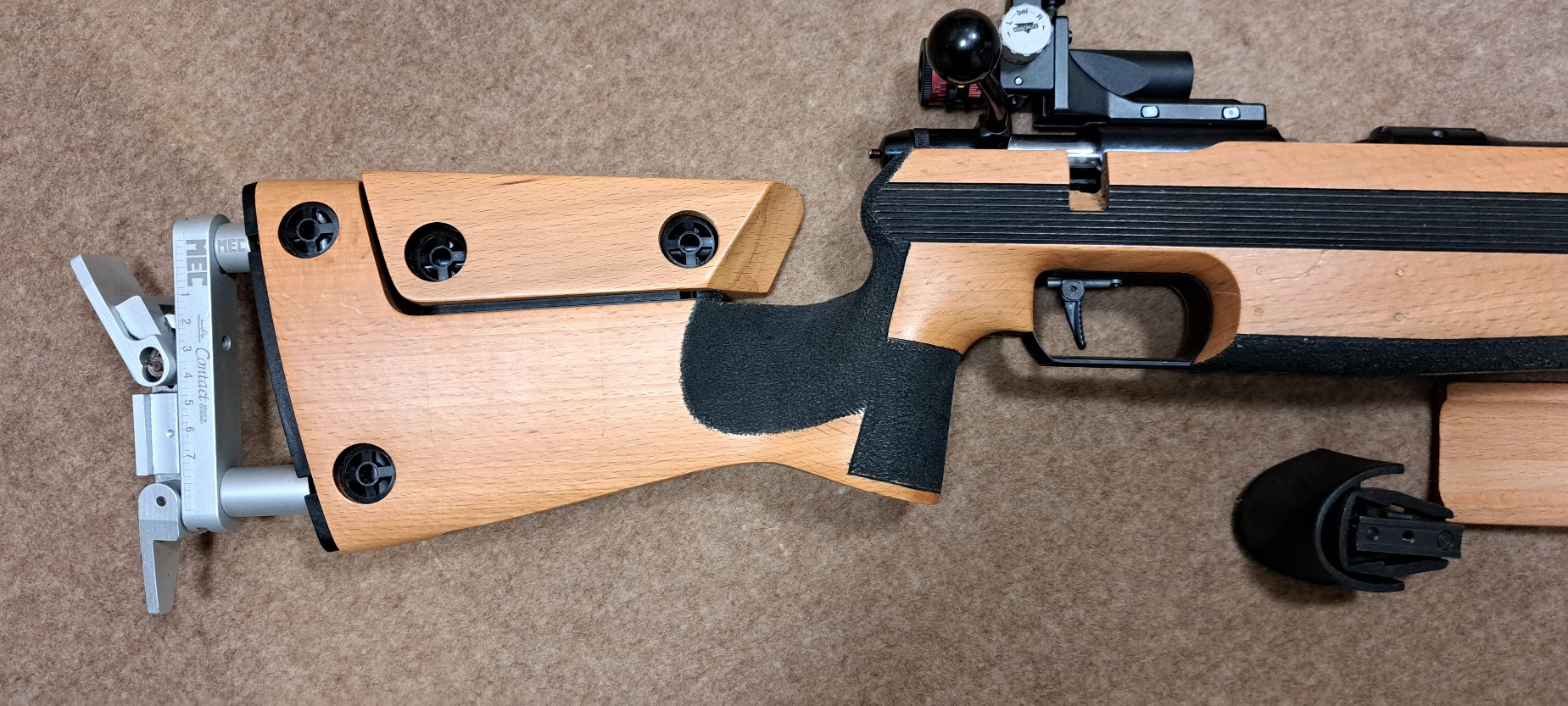 Buchenholz-Matchschaft mit justierbarer, Schaftkappe von MEC, Typ Contakt; justierbarer Backe, Schiene für Dreistellungskampf