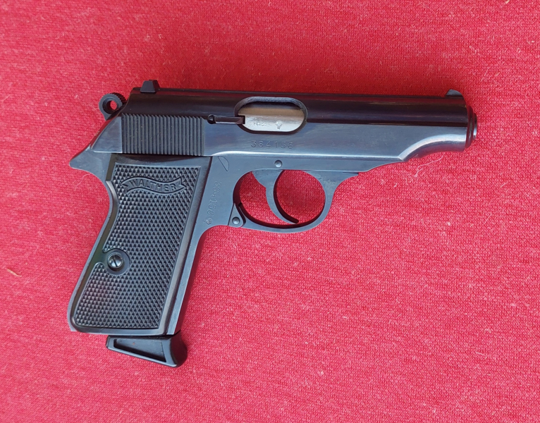 Eine Pistole von Hersteller "Walther", Mod. PP / Kal.: 7,65mm Browning / Baujaht 1968 / guter Gesamtzustand mit wenigen oberflächigen Spuren / die Funktion ist sehr gut / der Lauf ist innen blank und gut / Magazin ist dabei /