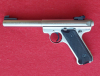 Eine Pistole von Hersteller "Ruger", Modell: Mark II Match / Kal.: .22lr / Stainless-Steel-Fertigung / nur wenig oberflächige Spuren, guter Gesamtzustand / der Lauf ist innen blank, die Züge sind scharf / Lauflänge 140mm, Laufdurchmesser 22mm / das Magazin ist dabei /