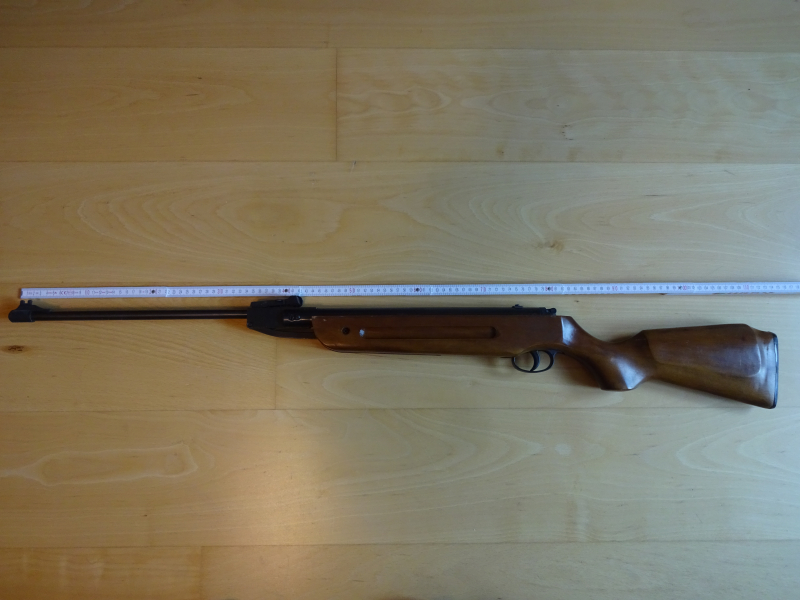 Luftgewehr Knicker deutsches Design System: Federlau, Knicklauf Einzellader Kaliber: 4,5 mm (.177) Munition: Diabolo manuelle Sicherung Schaft: Holz, Nussbaum Abschussenergie: 7,5 Joule Visierung: einstellbare Kimme, Lochkorn Möglichkeit ein Zielfernror zu montieren