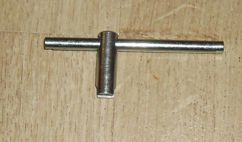 Neuer Pistonschlüssel 4,55mm Aufnahme / Schlüsselweite für Vorderladerrevolver / Vorderlader für kleinen Zündhütchen, Außendurchmesser 7,92mm. Mit beweglichen Quergiff / Knebel, in beide Richtungen verschiebbar. Handknebel ist nicht herausnehmbar, sondern gegen Verlust gesichert. Niedrige Bauhöhe 25,6mm. VERNICKELT, gegen Rost. Toll gemacht.