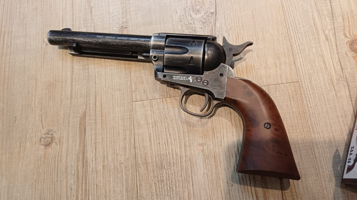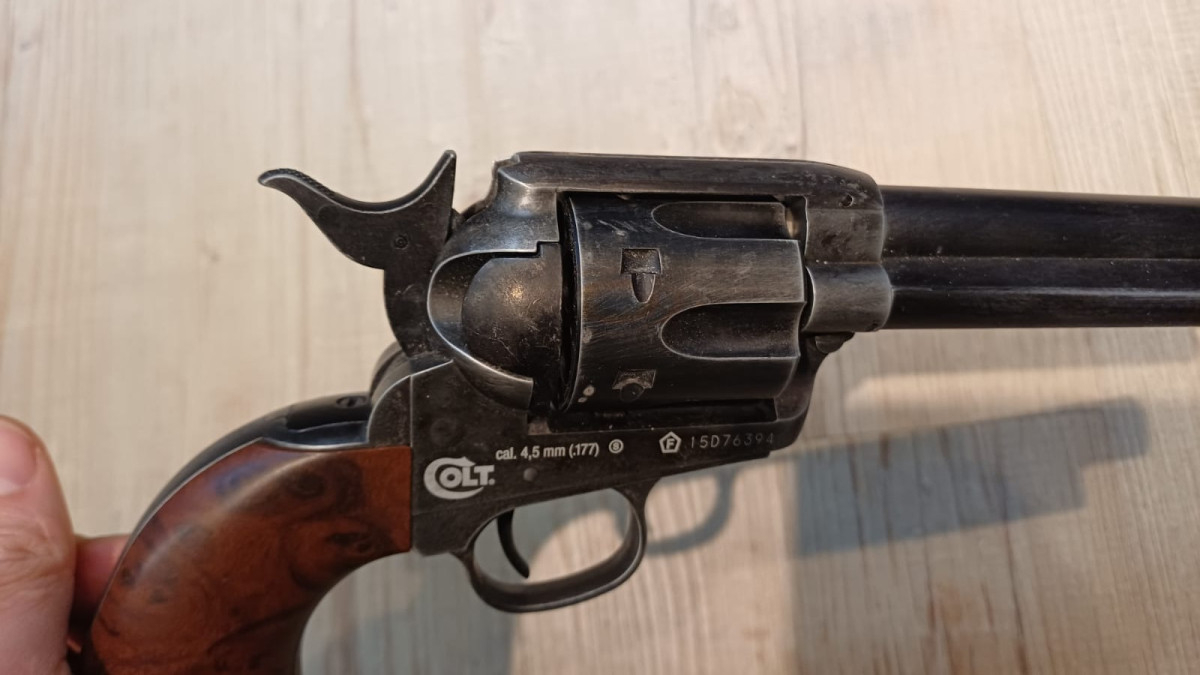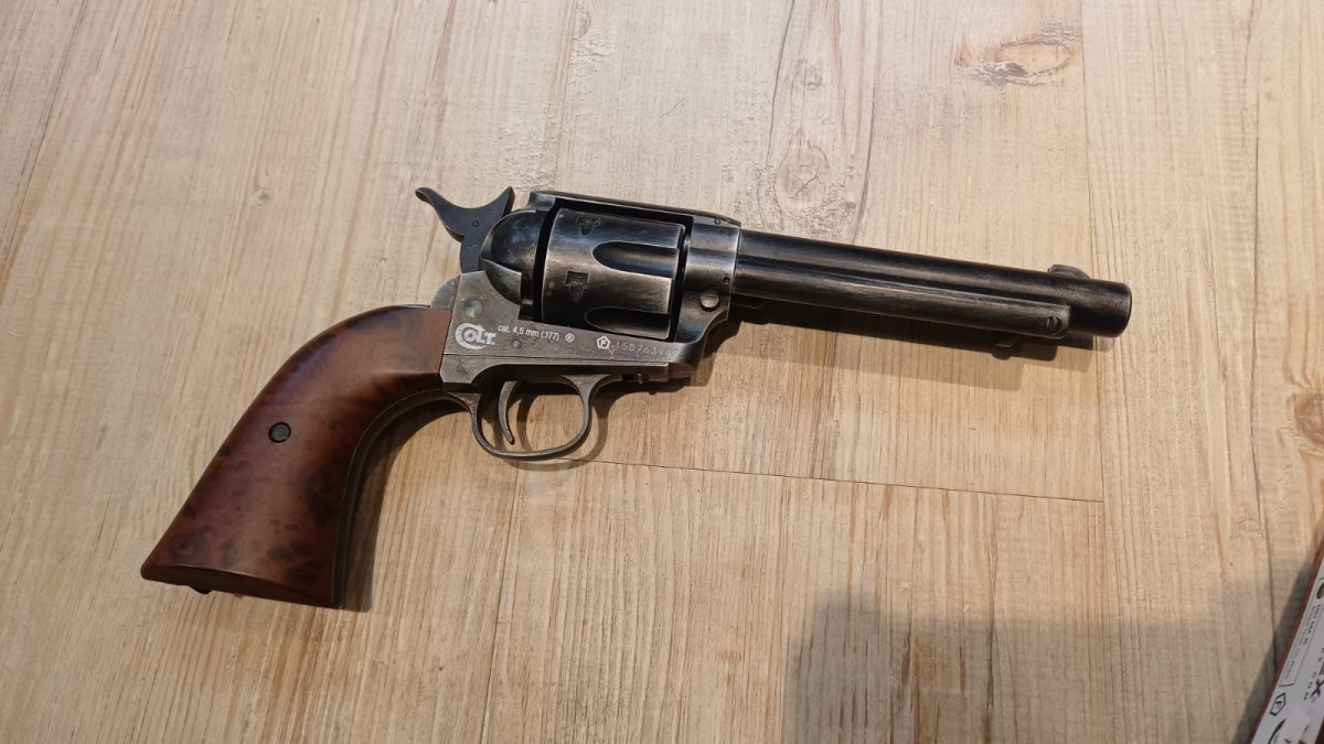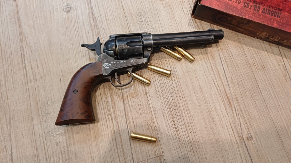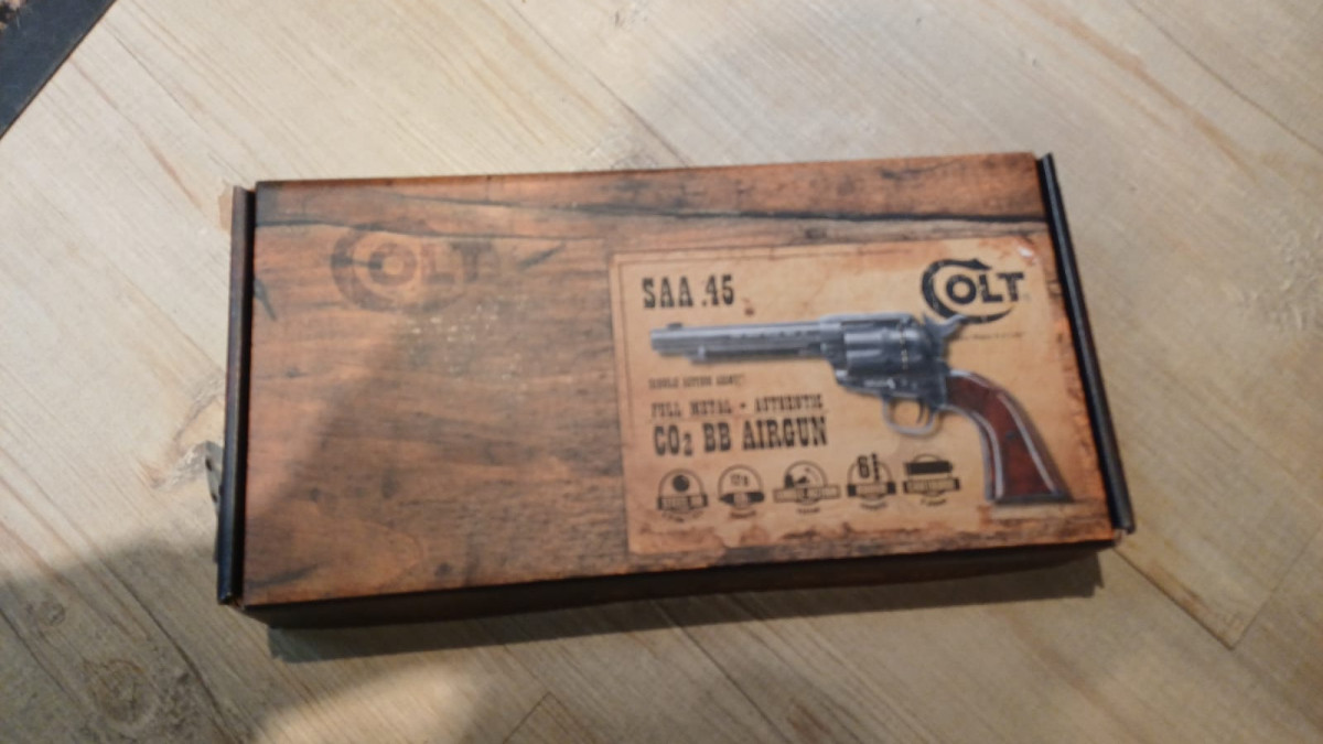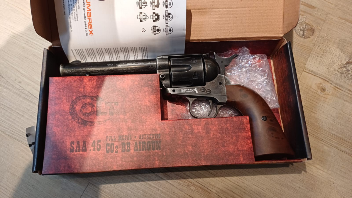 Umarex Colt CO2 Revolver mit 6 Ladapatronen Vollmetall Version, sehr realistisch bisher vermutlich noch ungeschossen, stammt aus Sammlernachlass, Antik-Finish used look