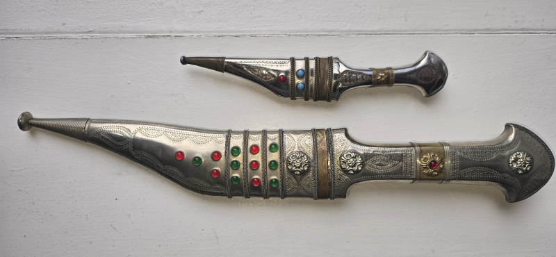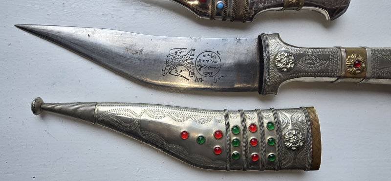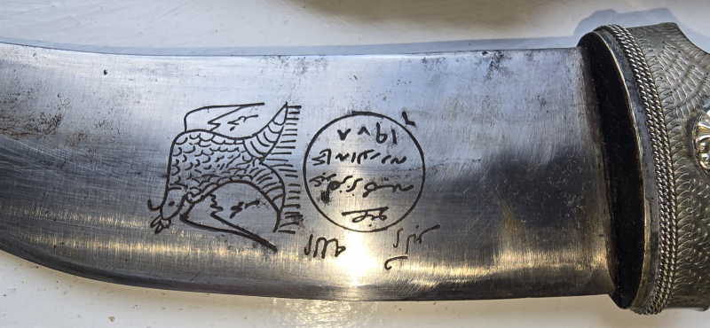 Auf beiden Klingen sind religiöse islamische Symbole und Inschriften in Arabisch vorhanden.