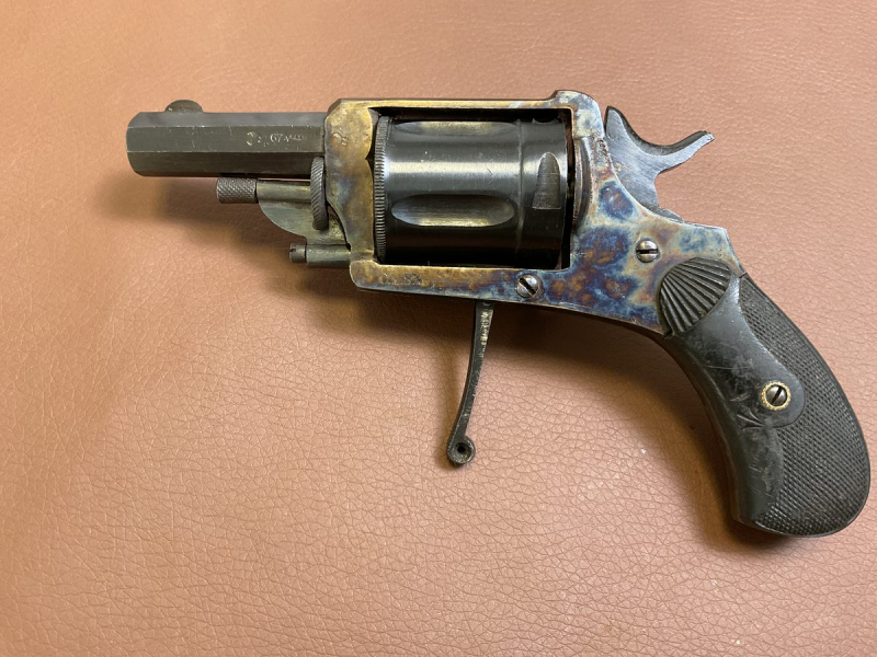 zum Verkauf steht ein originaler Taschenrevolver aus Spanien im Kaliber 8mm -minimale Alters und Gebrauchsspuren an der originalen Brünierung -5 Schusstrommel -SA und DA Abzugssystem -Lauf innen fast blank mit minimalen punktuellen Roststellen,Züge und Felder sehr gut erhalten -Lauflänge 5,4cm -Gesamtlänge 15,8cm Achtung EWB erforderlich! Die Bilder sind Teil der Beschreibung Verkauf außerhalb von Deutschland nur nach vorheriger Absprache an zertifizierte Händler.