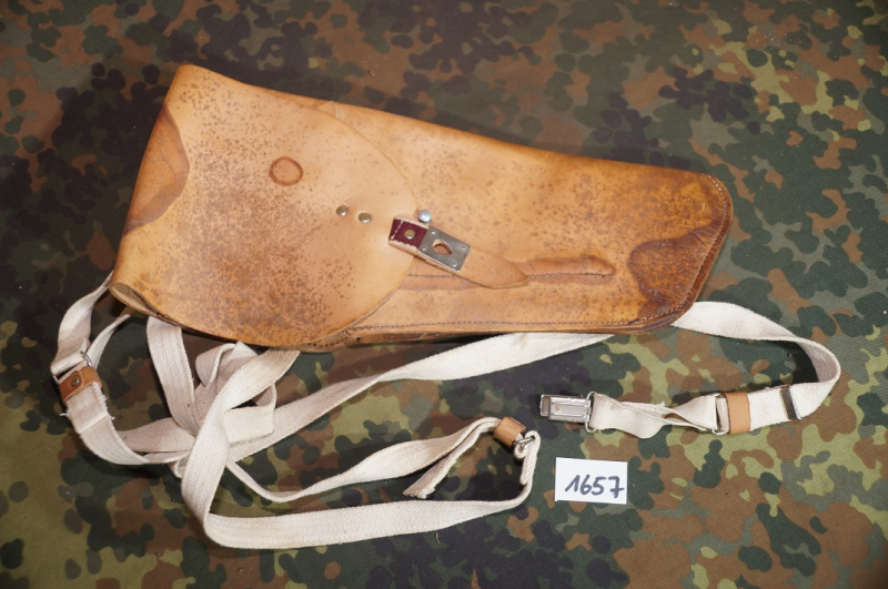 Achtung aufgepasst: PM63 Maschinenpistolen Schulterholster aus DDR-Beständen / ehemalige NVA. Fleckiger Zustand, siehe Foto. Aufgrund des Zustands, VERKAUF AUSDRÜCKLICH ALS DEFEKT! Es handelt sich bei allen von uns angebotenen Ersatzteilen um FREI VERKÄUFLICHE TEILE. Sie erhalten exakt die abgebildeten Ersatzteile. Alle Angaben nach bestem Wissen und Gewissen. Bitte beachten Sie auch unsere weiteren Auktionen. Viel Spass beim Bieten. Versand ausserhalb Deutschlands 22 Euro.
