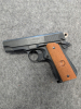 Die Pistole hat echte Holzgriffschalen und kommt mit einem Magazin.