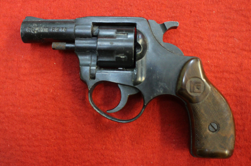 Revolver Röhm Modell RG 76. Kaliber 6mm Flobert Knall. Lauf mit integriertem Abschußbecher. Sehr starke Gebrauchsspuren, teilweise Flugrost. Ich hoffe ich habe die PTB-Nummer richtig entziffert.