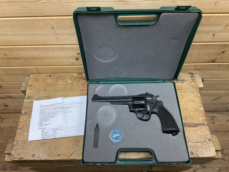 Neuwertiger CO2 Revolver von DIANA Mod. R 357, 6" Kal. 4,5mm Diabolo, mit 8 Schuss Trommel, gezogender Lauf, Double Action, Co2 Kapseldichtung muss erneuert werden lag mit angestochner Kapsel ewig im Koffer! sonst neuwertiger Zustand!