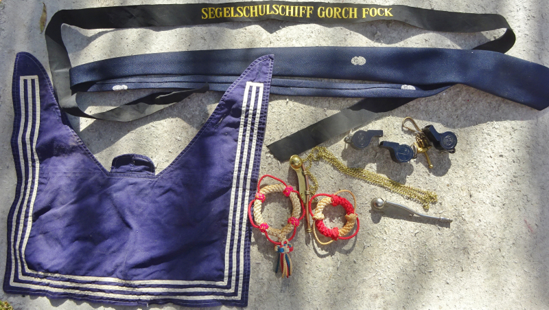 Orig. Kieler Kragen, Krawatte Minentaucher, Mützenband Gorch Fock, Bootsmanns- und Trillerpfeifen usw. Lieferumfang siehe Foto. Durch Ihr Gebot erkennen Sie an, dass es sich um eine Privatauktion ohne Rücknahme handelt. Haftung für Verlust bzw. Beschädigung der Sendung, die über das Maß der Haftung des Zustelldienstleisters hinausgehen, übernehme ich nicht. Zahlung innerhalb von 1 Woche. Versand 7,-€ versichert, nicht verhandelbar. Paypal NUR auf ANFRAGE!! Viel Glück beim Bieten!