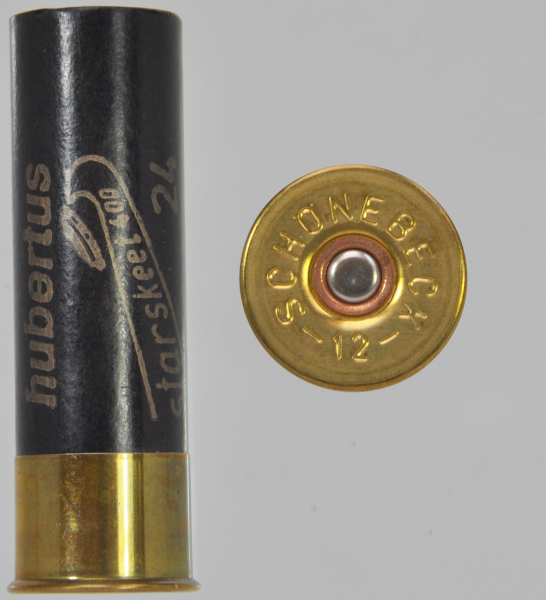 Leere Schrotpatronenhülse vom VEB Sprengstoffwerke Marke Hubertus Star Skeet