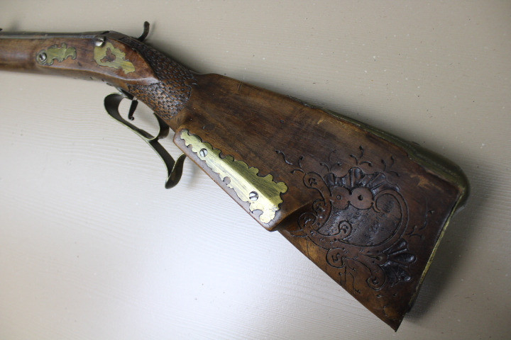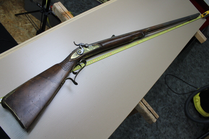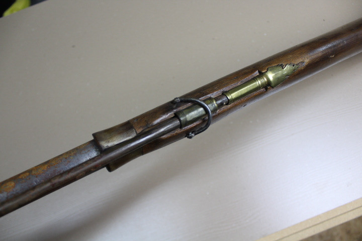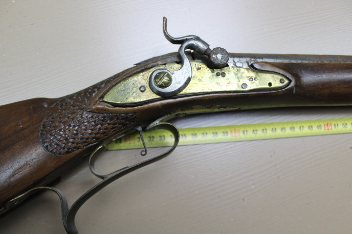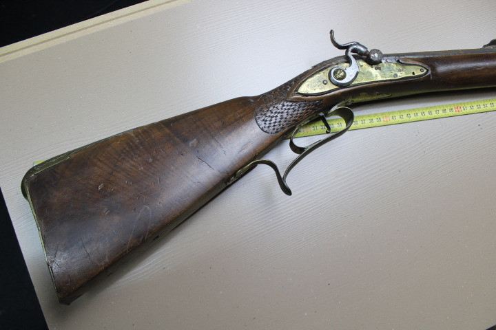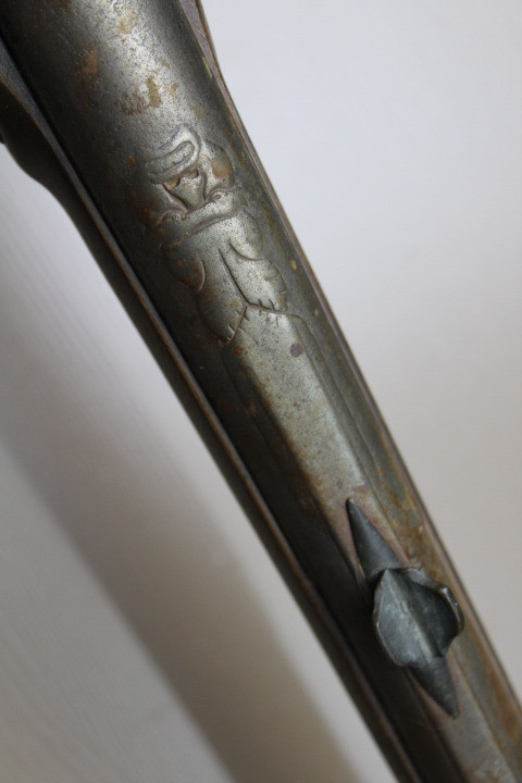 Restaurationsstück. Aus Sammler Nachlass. Noch in unberührtem, noch nicht gereinigtem, Fundzustand. Kaliber ca 18mm. Der Vorbesitzer ist verstorben deshalb habe ich keine nähere Info über das Stück. War auch nicht in optimalen Lagerort gelagert, eine alte Scheune!!!