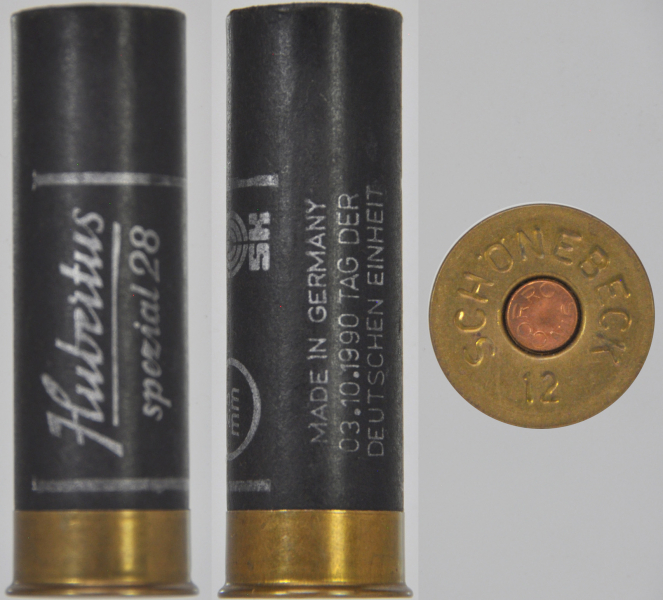 Leere Schrotpatronenhülse von SK Hubertus / Tag der deutschen Einheit 1990
