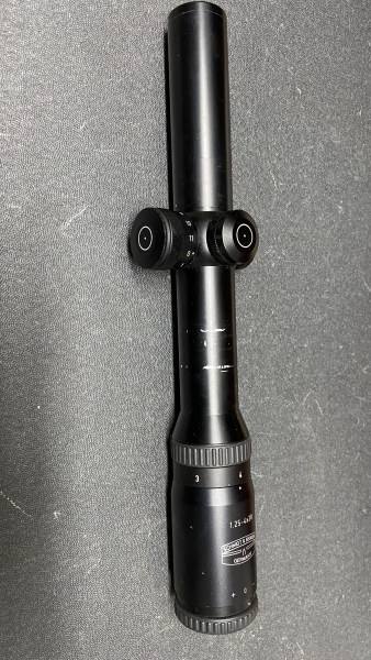 S&B 1,25-4x20 mit Leuchtpunkt, ohne Schiene. Optik / Linsen in sehr gutem Zustand. ZF Körper mit Klebespuren. Körper sonst ohne jegliche Beschädigungen. Leuchtabsehen mit Leuchtpunkt. Foto mit LA unscharf, in natura natürlich in typischer S&B Qualität. Ohne Zubehör.