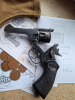 Biete hier einen sehr gesuchten Webley MK IV Revolver original Stahlwaffe an, der Revolver wurde auf 9 mm Knall umgebaut. Züge und Felder deutlich im Lauf sichtbar, kein Gewinde am Laufanfang, keine hässliche Bohrung an der Unterseite des Laufes. Der Revolver funktioniert einwandfrei ebenso der automatische Hülsenauswurf. Mit dabei ein Holster aus festem, geöltem Leinen, einige echt alte Penny-Münzen, Pfundnoten sowie eine Gebrauchsanleitung in Kopie. Sie erwerben ein sehr gesuchtes Sammlerstück, denken Sie jetzt schon an Weihnachten, das ideale Geschenk dass Sie sich selber schenken möchten !!!!! Der Verkauf erfolgt wie immer ohne Garantie, Umtausch oder Gewährleistung da Privatverkauf. Ich versende mit DHL und Sendungsverfolgung, Bitte bei der Überweisung nur die Auktionsnummer als Verwendungszweck angeben, ich möchte Schwierigkeiten mit der Bank vermeiden, stimmt die bei e Gun hinterlegte Adresse noch ?