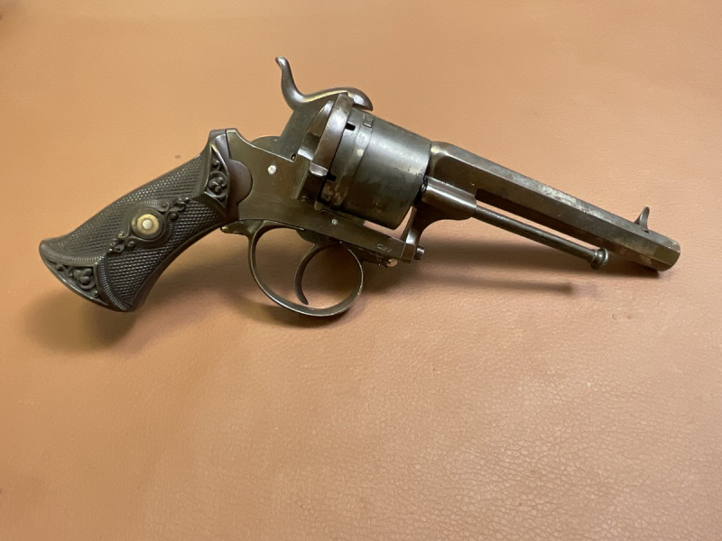 zum Verkauf steht ein originaler Stiftfeuerrevolver aus Dutschland im Kaliber 9mmLefaucheux -deutliche Alters und Gebrauchsspuren an der originalen Brünierung -6 Schusstrommel