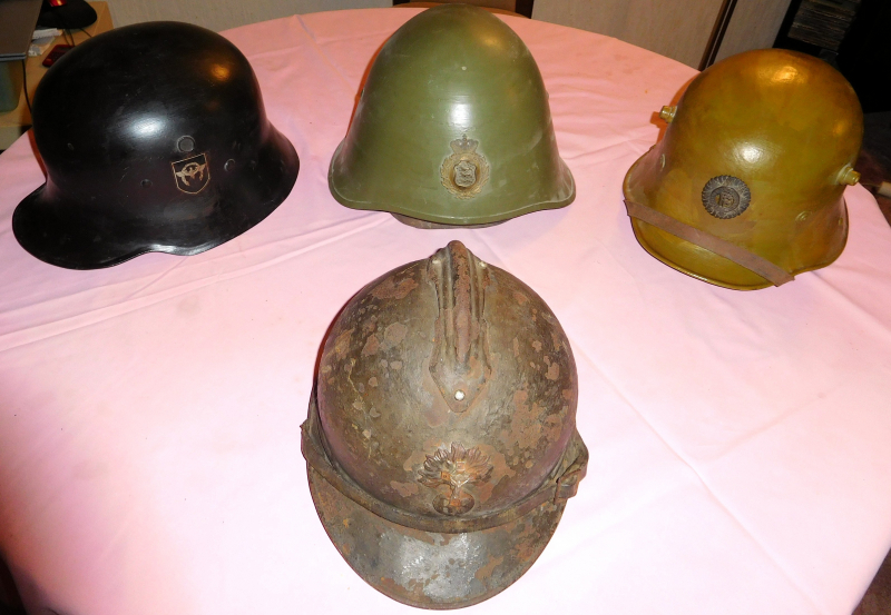 2. ein alter Stahlhelm aus Dänemark Modell 1923, so kaum noch zu bekommen. 3. ein französischer Stahlhelm Modell ADRIAN M. 1915