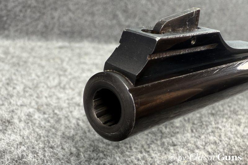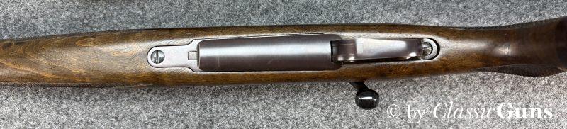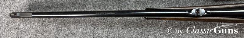 650 mm langer Lauf aus „KRUPP-SPECIAL BARREL STEEL“ und mit neuwertigem Zug-/ Feldprofil. Sehr gut erhaltene Brünierung überwiegend mit nur minimalen Gebrauchsspuren, im Bereich Magazinkasten / Abzugsbügel mit etwas stärkeren Gebrauchsspuren. Kammer mit Sonnenschliff. Sehr schöner und hochwertiger Nussbaumschaft, ebenfalls mit nur minimalen Gebrauchsspuren. Der Hinterschaft wurde fachmännisch auf den Vorbesitzer angepasst (Bild 3 und 4!). Trocken stehender Direktabzug, Mittelschaftmagazin für vier Patronen und mit Klappdeckel.