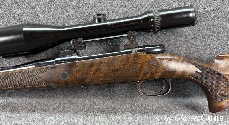Insgesamt noch sehr gut erhaltene und bewährte Büchse mit Magnum System (G-Serie), aus qualitativ extrem hochwertiger Fertigung der Firma Heym, in unserer Büchsenmacherwerkstatt fachmännisch gereinigt und verantwortungsbewusst geprüft.