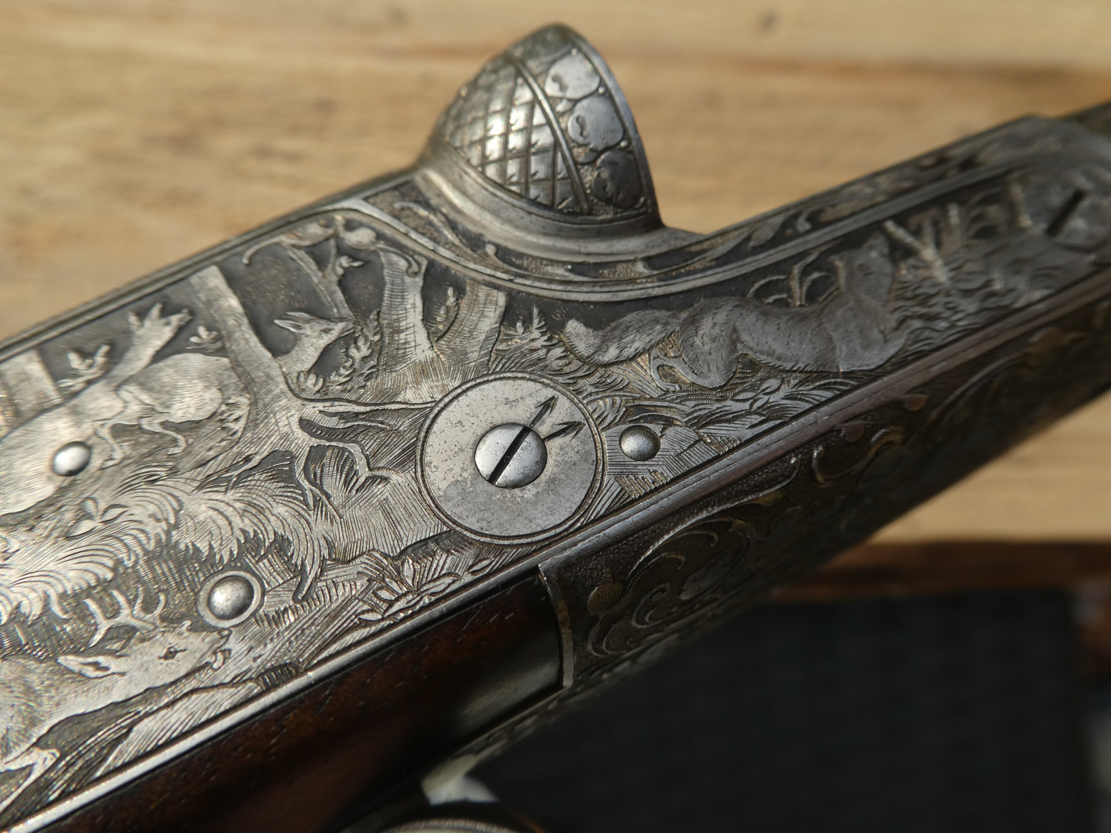 Tolle Gravur der Basküle , Waffe schließt stramm und ist dicht.