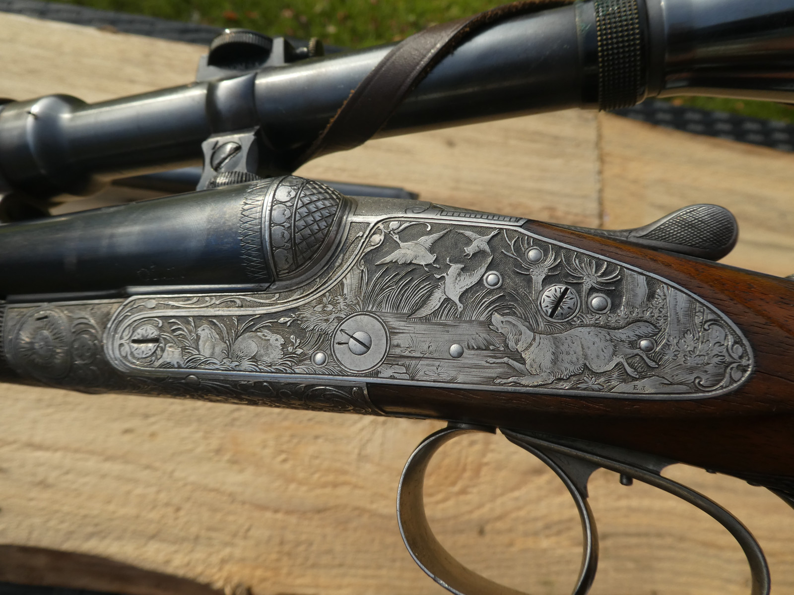 Büchsflinte Anschütz Merkel mit Seitenschlössern , 9,3x72R inkl Wechellauf 16/65 ca 100 Jahre alt