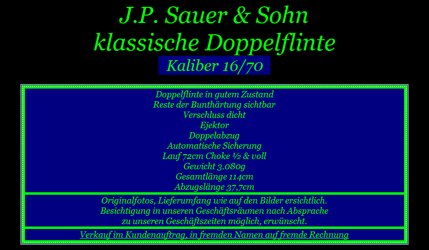 Artikel-ID: 20164528  •  ArtikelNr. des Verkäufers: 12213  •  Kategorie: Jagdwaffen > Flinten > Querflinten
