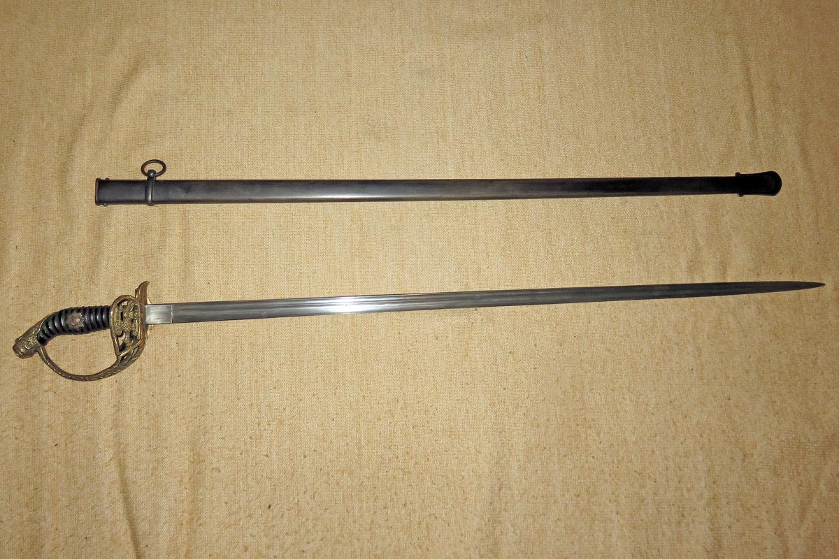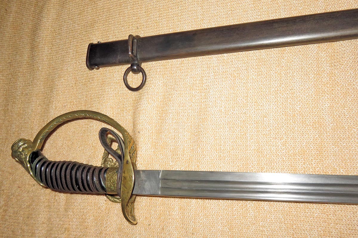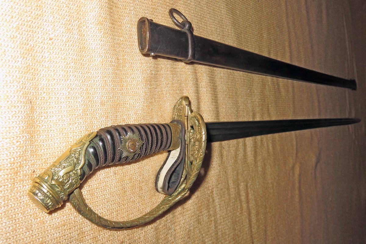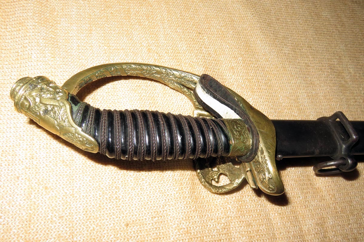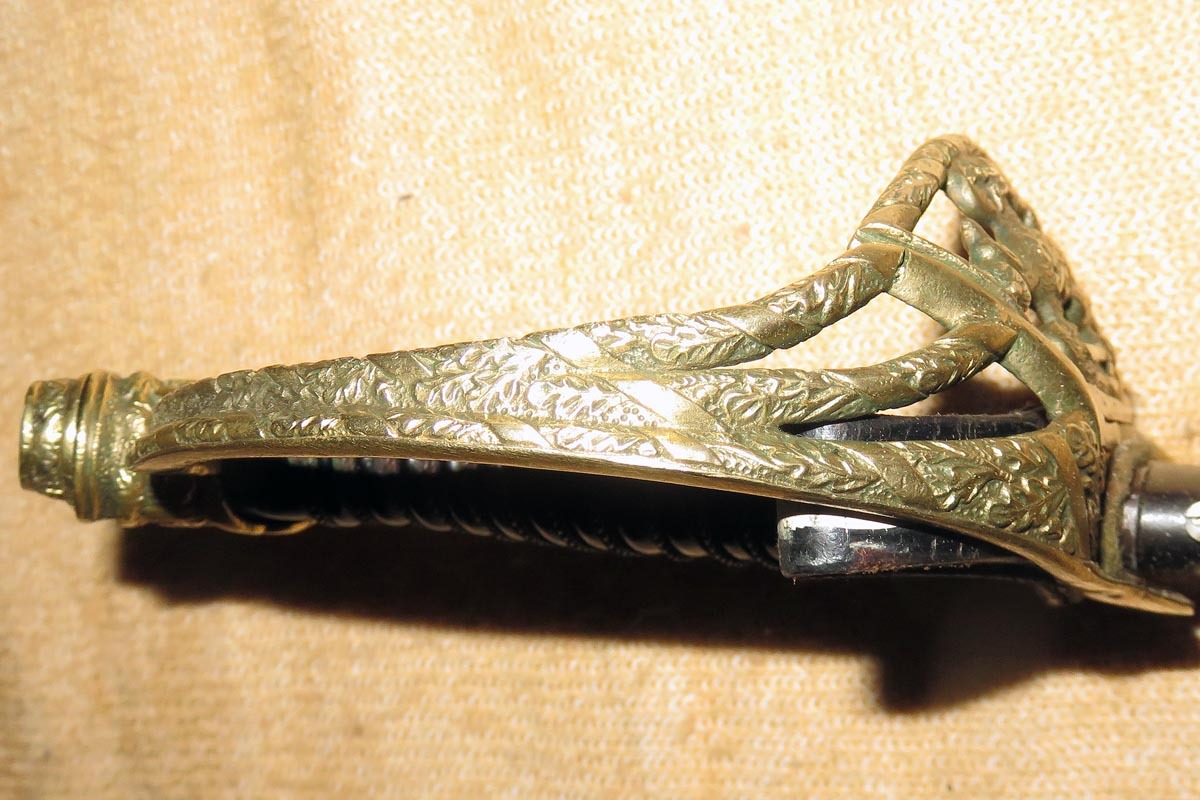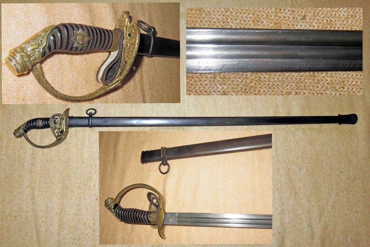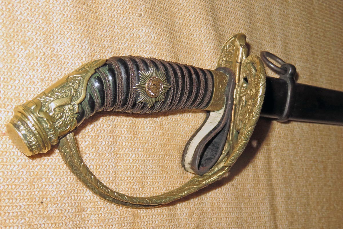 Der originale preußische IOD hat ein reich verziertes Gefäß, einen Griff mit Gardestern und Fingerschlaufe, sowie eine schwarz brünierte Eisenscheide mit einem Tragering.