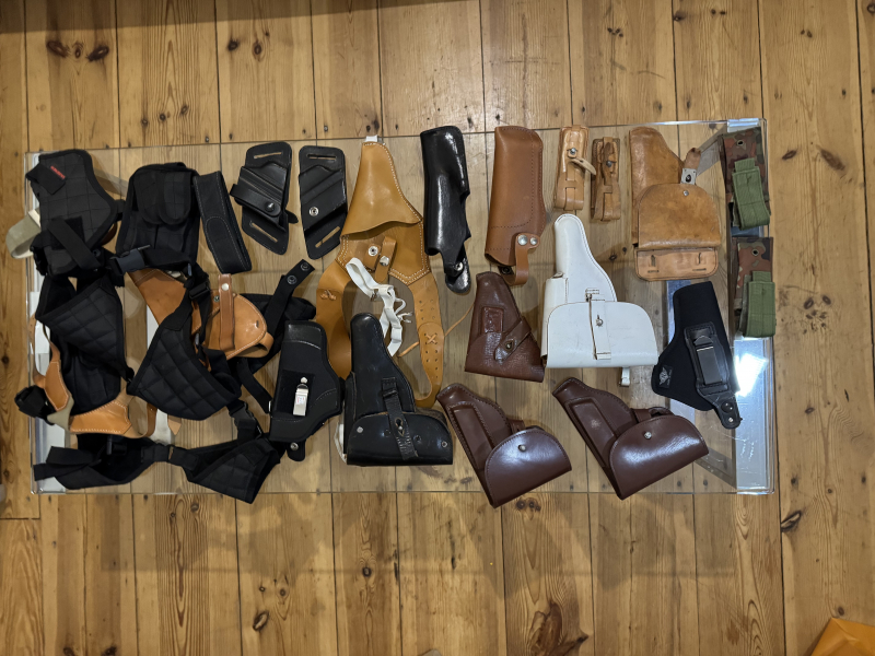 Liebe eguner, hiermit verkaufe ich ein riesiges Konvolut an Holstern. Ich denke mal für jede Waffe ist was dabei.